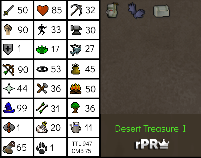 99 Magic & 90 Ranged & 90 Strength Gmaulerš Desert Treasureš Mithril Glovesš God Bookš Ava'sš