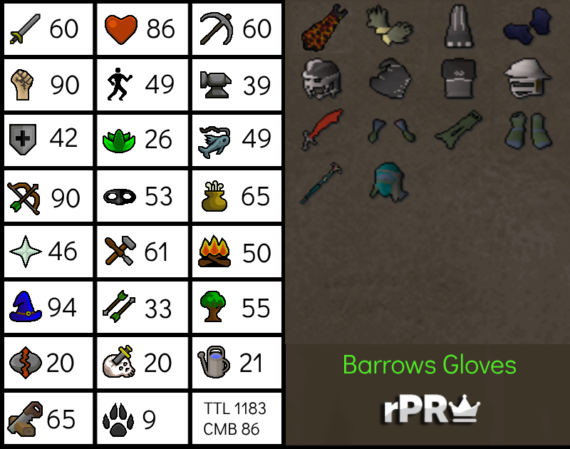 Infernal cape zerk; PK ready zerk; Torso Zerk; Lunar Diplomacy Zerk; Bgloves Zerk; 94 Magic Zerk; 90 Strength Zerk; 90 Ranged Zerk